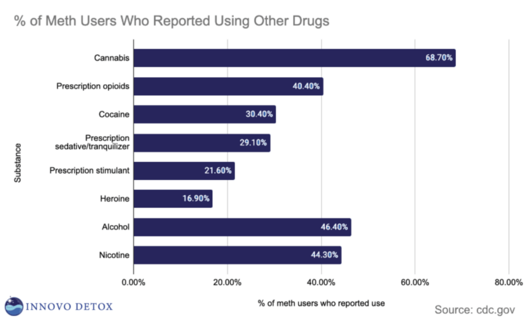 - According to the CDC, among adults who used methamphetamine in the past year, the estimated prevalence of using or misusing other substances was as follows: